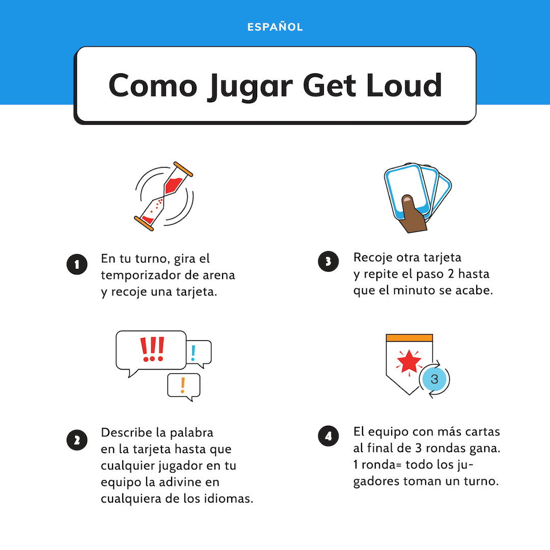 Whether you're practicing your Spanish, teaching the language, or just love to get loud con tu gente, this game brings the competition and hype to any gathering.
