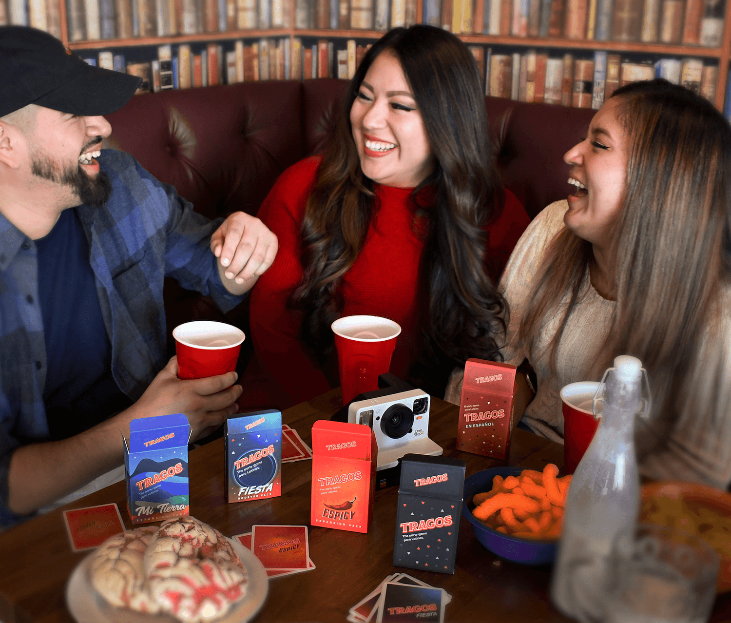 A veces no puedes jugar con tu familia porque el juego no está en un idioma que todos entienden. A veces los juegos no son entretenidos porque hablan de temas con los que no te puedes relacionar. Por eso creamos Tragos, para que todos se sientan representados mientras pasan un buen rato con sus seres queridos.